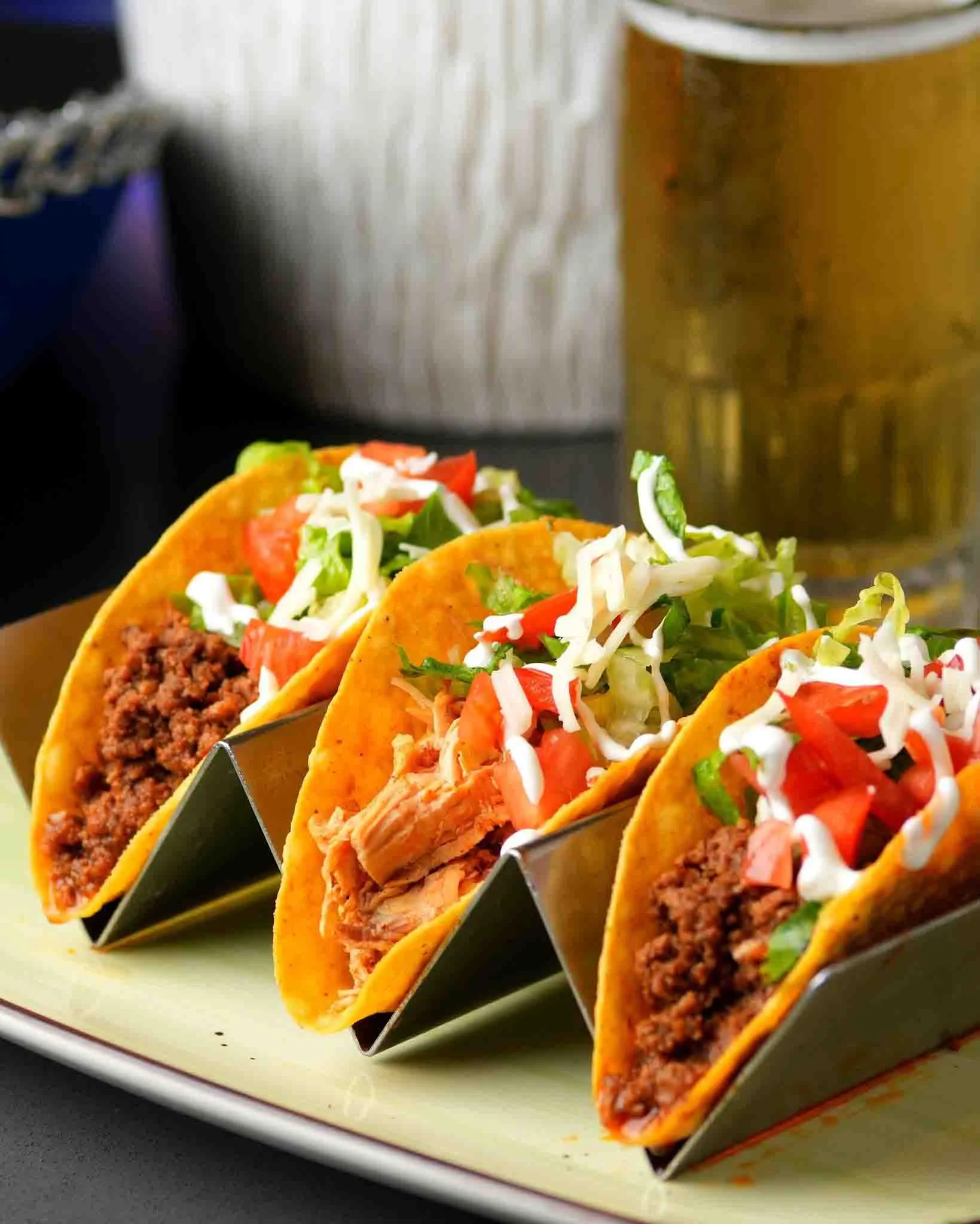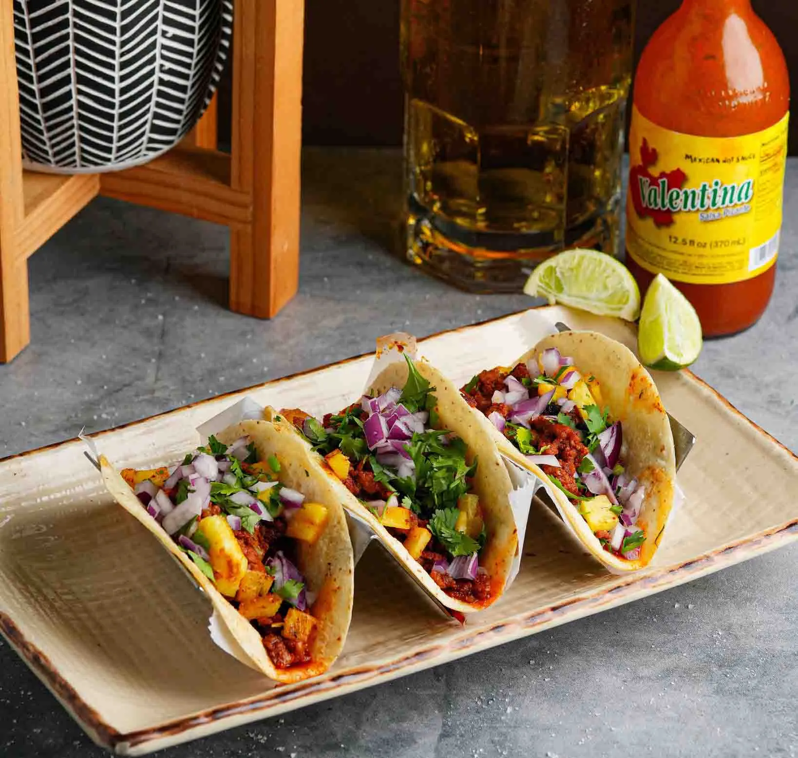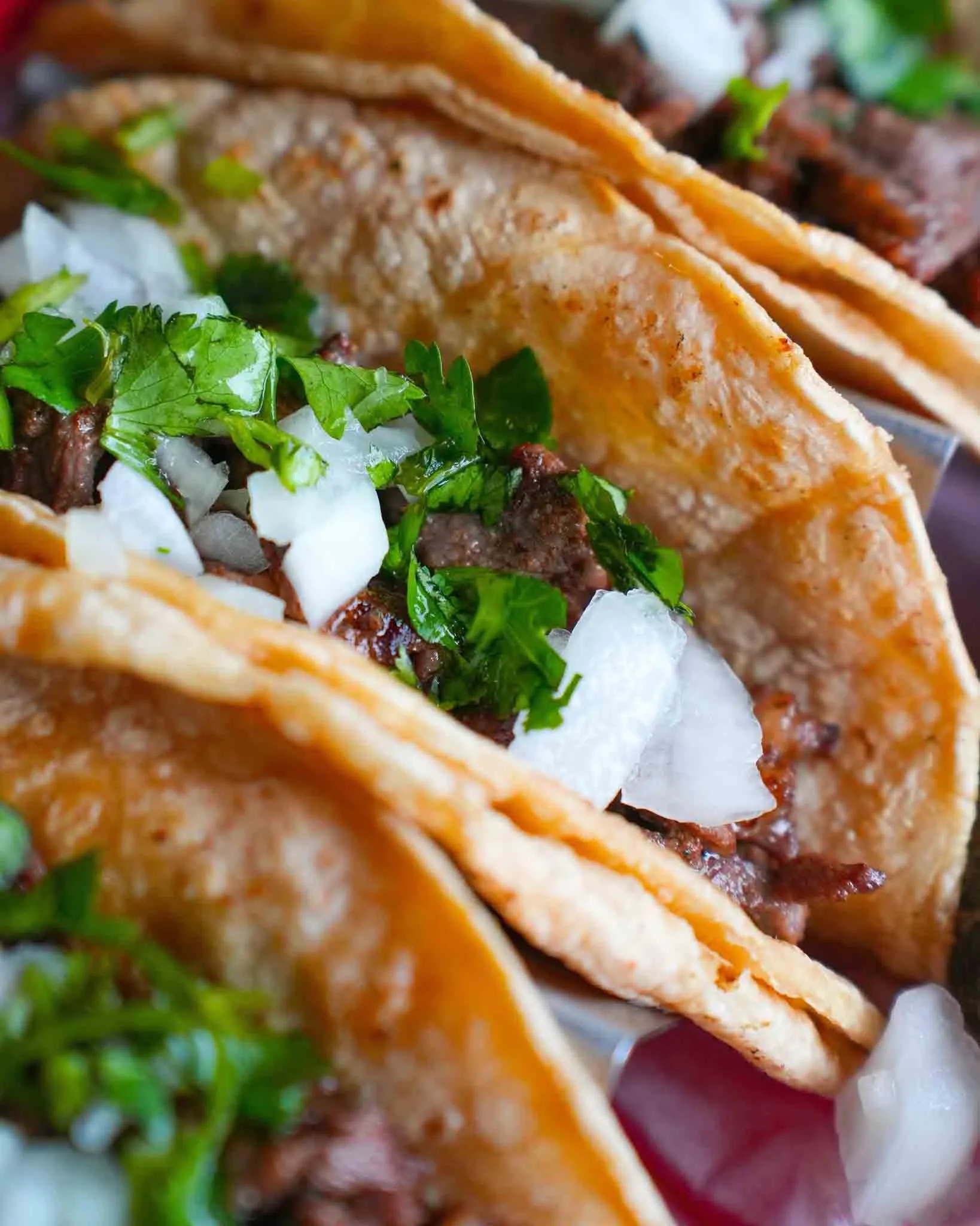 3 of the same tacos served with Rice & Beans. Mexican Style: Onions & Cilantro | American Style: Lettuce, Tomatoes & Shredded Cheese.