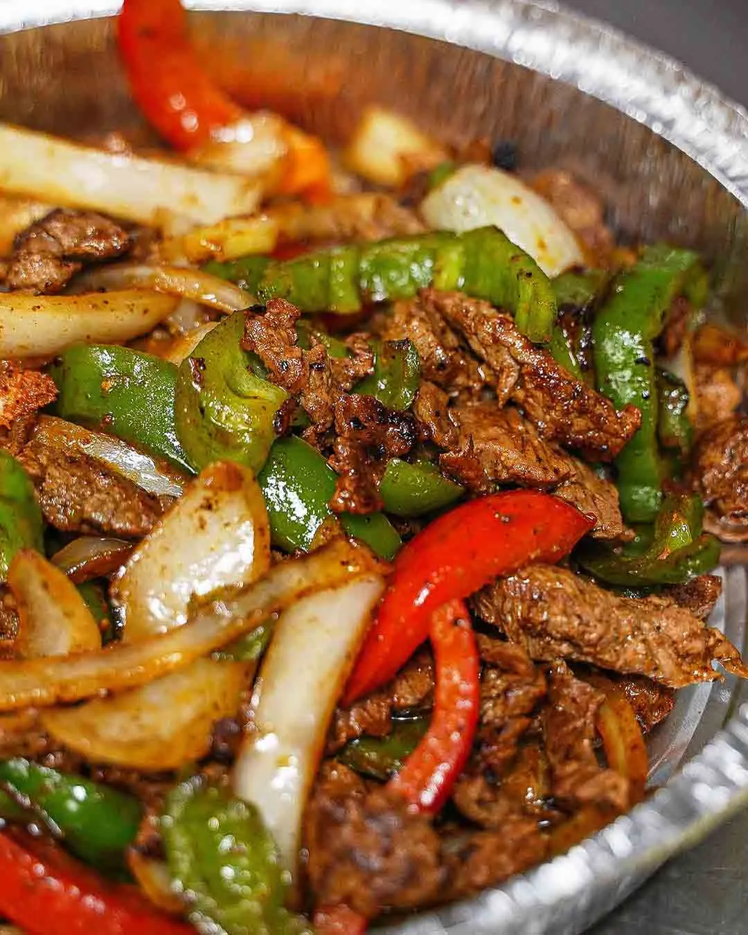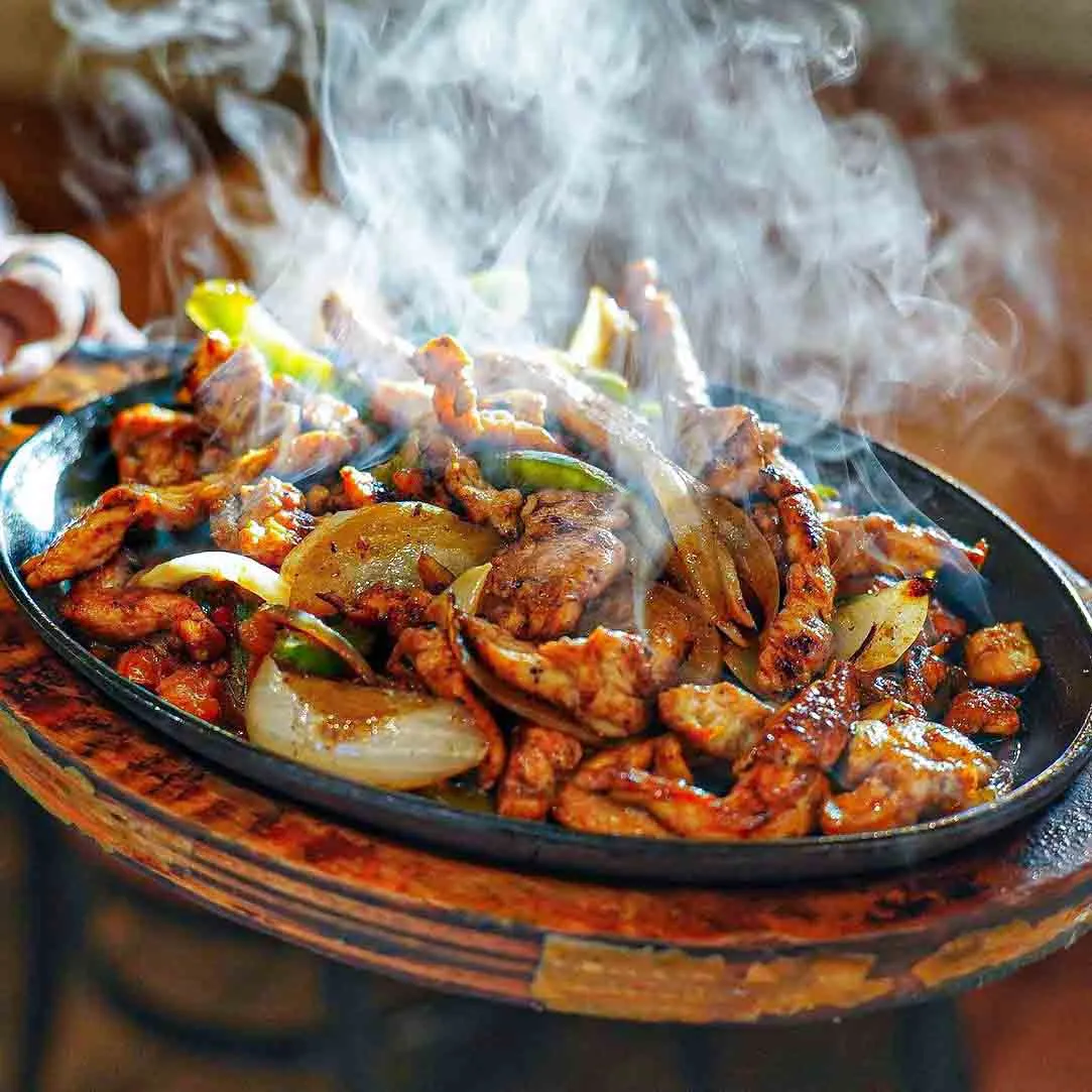 Grilled steak or chicken cooked with onions, tomatoes and peppers.