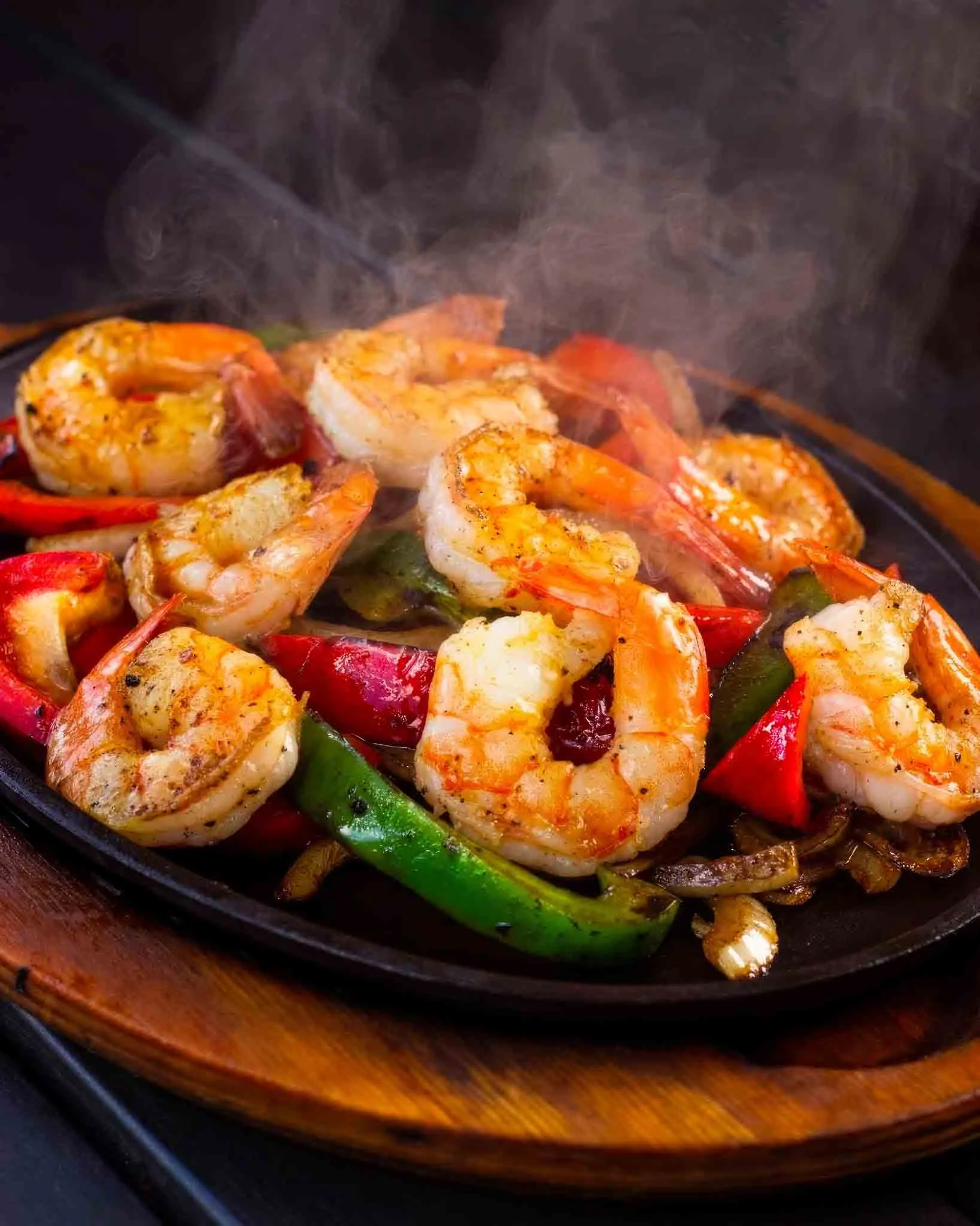 Grilled shrimp, grilled onions, bell peppers, queso, lettuce, sour cream, Mexican rice, guacamole, and pico de gallo.